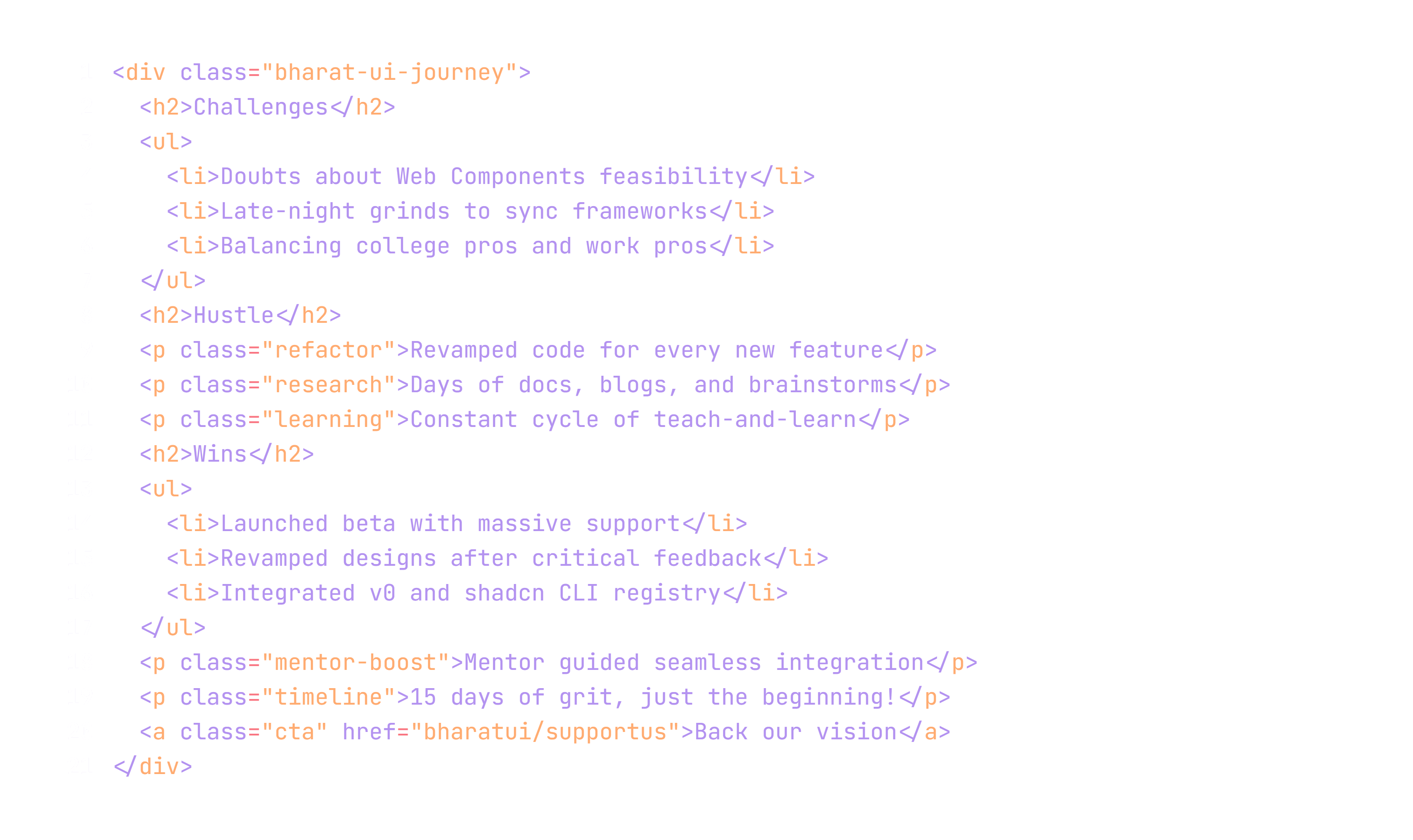 A passionate team crafting India's own UI component library — blending design, code,and culture to empower developers across Bharat